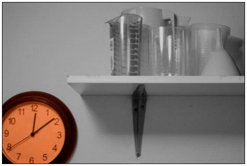 Luego un cuarto oscuro, tapado con una cortina opaca que tuve que parchear cientos de veces. La pared que cobija las dos ampliadoras está forrada de cartulina negra, porque nunca nos lo dejaron pintar. Todo lleno de mis copias, mis pruebas, mis contactos, mis negativos. Unas tijeras, los cartones que uso para hacer tapados, mis filtros. Todo. Ahí en la pared colgué un reloj de pared que compré en Ikea. Las agujas eran rojas, así que las tuve que pintar de negro con esmalte de uñas para que se vieran a la luz del cuarto oscuro. No recuerdo a quién provoqué tremendo ataque de risa cuando, al preguntarme la hora, respondí sacando del bolso mi reloj de pared recien comprado. Arriba una gotera de las grandes, un verdadero agujero en el techo con media bayeta asomando. Y luego, al fondo del cuarto oscuro, la zona húmeda, que hace reir tanto a Tomás.