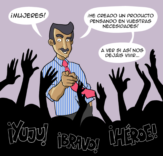 A él sí que le llamé la atención, no sin antes felicitarle por su producto. Le dije: si quieres sacar al mercado un producto para la higiene femenina, muérdete la lengua antes de quedar como un machista insoportable que le falta el respeto al 100% de sus consumidoras. He de decir que me contestó: gracias, tendré en cuenta tu consejo.