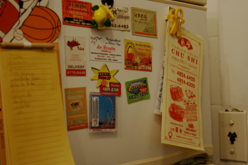En la puerta de la nevera un imán sujeta el teléfono y la carta de nuestro Chino de cabecera. Lo más rico, los arrolladitos primavera, los fideos de arroz saltados (que no salteados), la carne saltada con salsa Sa-Tza. Lo trae un chino en moto que habla poco español con un curioso y marcado acento argentino. Tengo en el barrio ciertos sitios frecuentes, como la parrilla donde el chorizo está exquisito y que se llena cuando hay partido del Boca. O la tienda de enfrente donde hornean empanadas de carne picante y la mejor pizza napolitana del mundo.